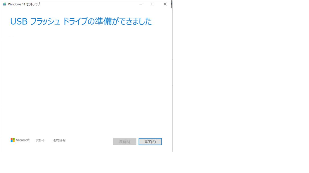 インストールメディアの作成開始されます。完了まで数分待ちます。