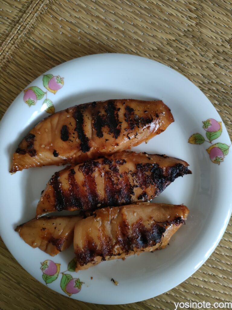 片面3分ずつ焼きました。少し焦げすぎている気もするので、タレが付いているものは、2分30分くらいでも良いのかなと思います。